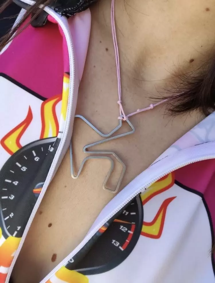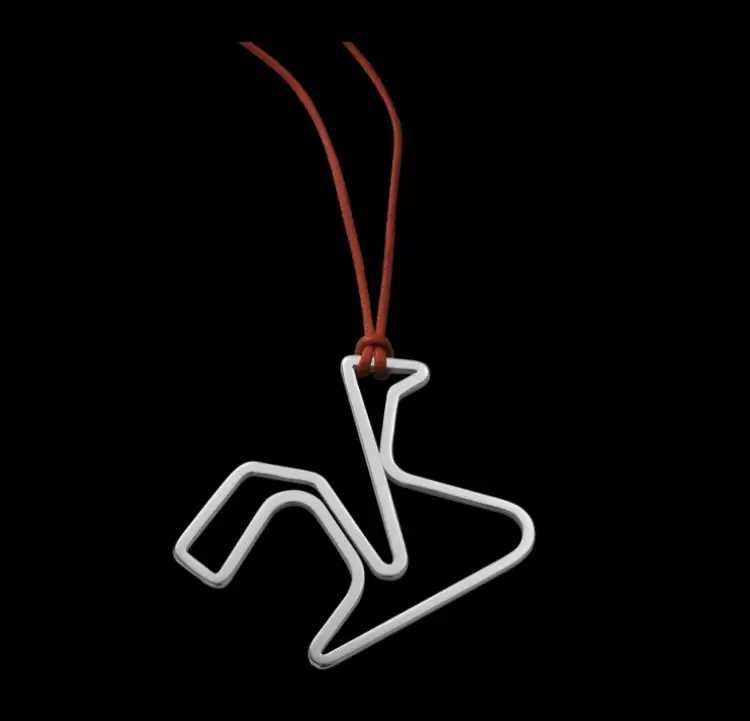 l ciondolo riproduce perfettamente la sinuosità delle sue curve e dei rettilinei dove i piloti ingaggiano sfide all'ultima curva,senza distinzione di colpi, come nella stagione 2005, quella della famosa spallata che aprì il mondiale MotoGP vinto poi da Valentino Rossi.