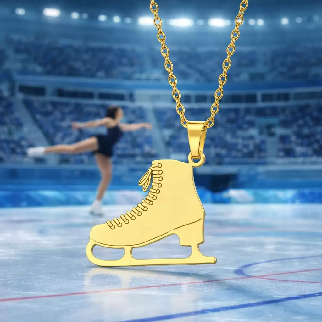 ⛸️ Ciondolo Pattino da Ghiaccio Personalizzabile in Acciaio Placcato Oro