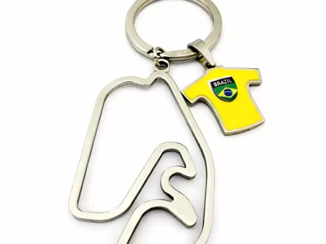Der Schlüsselanhänger mit dem Interlagos Circuit und dem Brasilien-T-Shirt wird in einer eleganten Verpackung mit einem Garantiezertifikat geliefert.