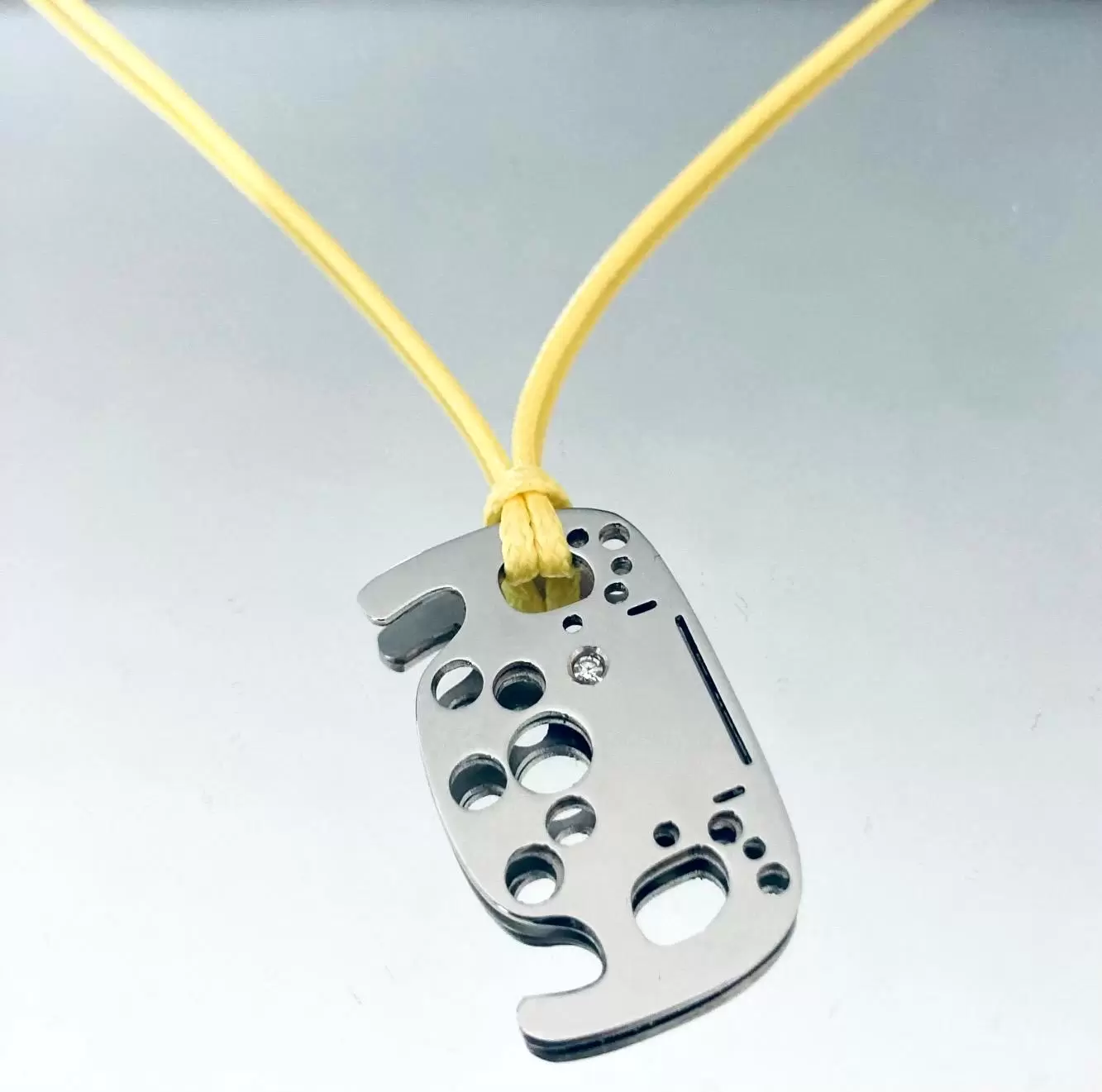 The pendant is sent inside an elegant package accompanied by the certificate of guarantee and waxed cotton choker.