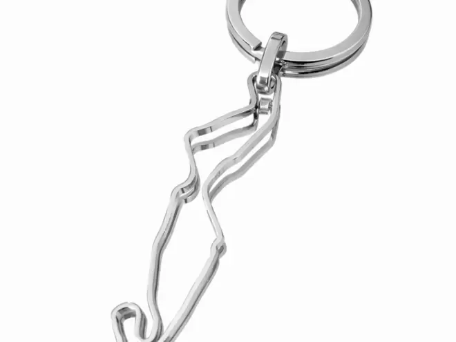The key ring perfectly reproduces the sinuosity of its curves and straights where the drivers engage in challenges at the last corner without distinction of strokes.