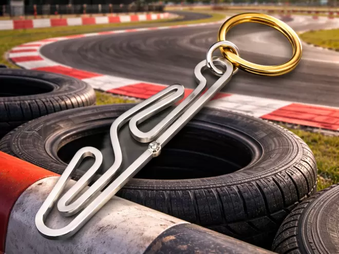 Crafted with great attention to detail, the circuit's minimalist design becomes a symbol of passion for speed, history and style. The gold finish lends brightness and sophistication, transforming a simple keychain into a distinctive object, perfect for those who love the world of motorsports or wish to carry a piece of legend with them at all times.