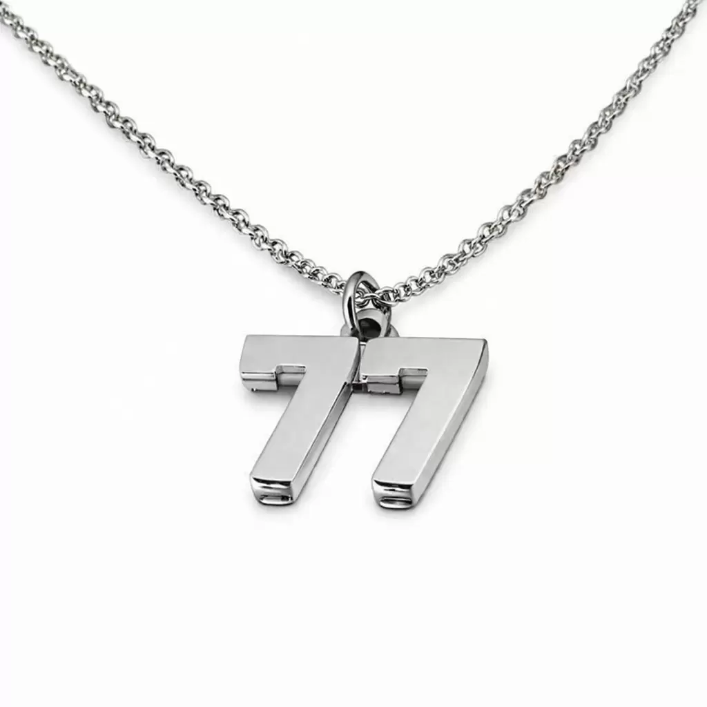 Un elegante colgante con el número 77 fabricado en acero inoxidable pulido, duradero e hipoalergénico, ideal para el uso diario sin perder su brillo con el paso del tiempo. Su diseño moderno y minimalista lo hace perfecto tanto para hombres como para mujeres, fácilmente combinable con cualquier estilo.