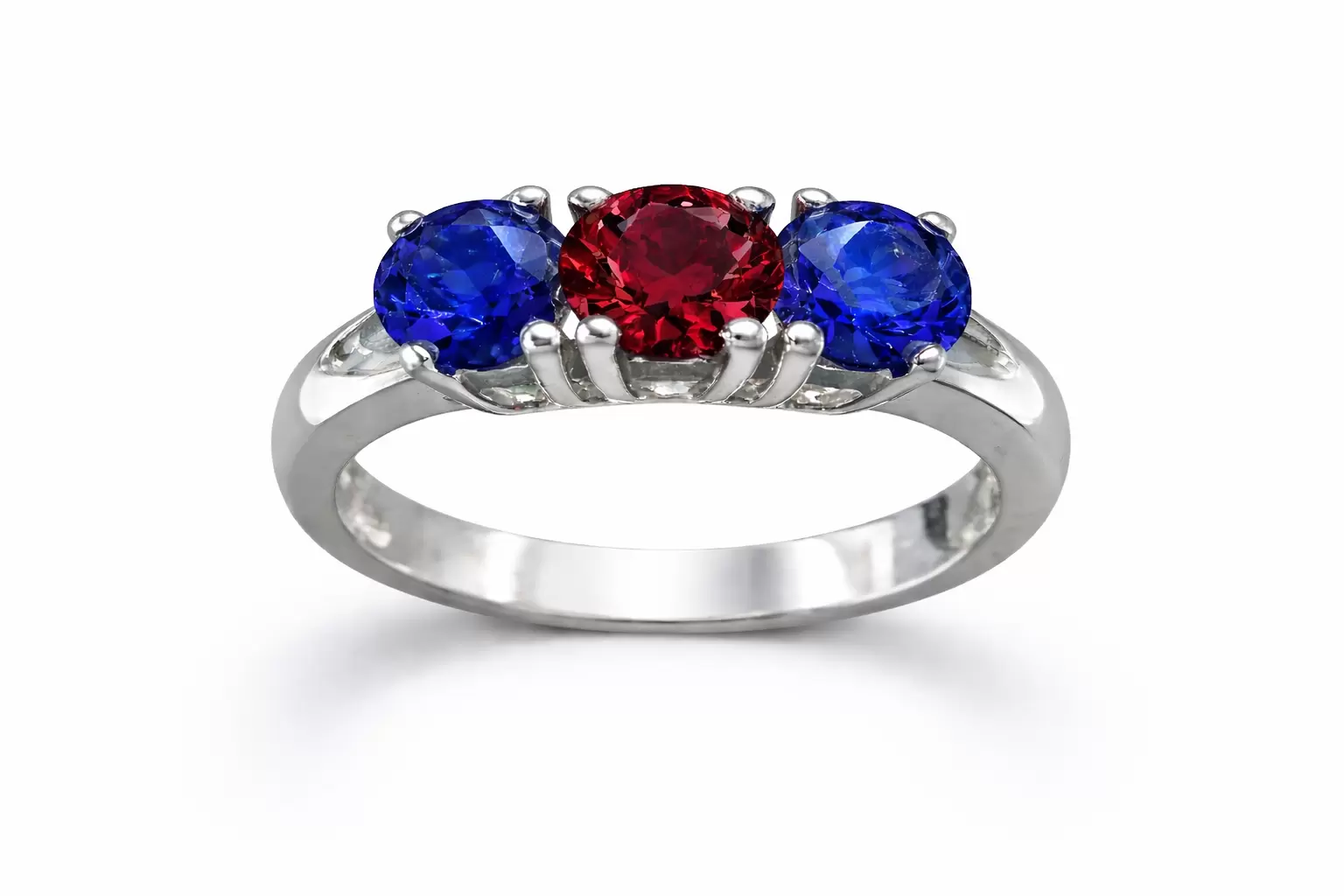 Anel Trilogia Blaugrana em prata de lei 925 com zircónias coloridas - Elegância desportiva e estilo intemporal.