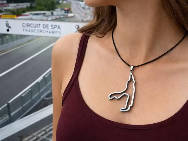 O pendente com o circuito de Spa-Francorchamps é enviado numa elegante caixa com um certificado de garantia.