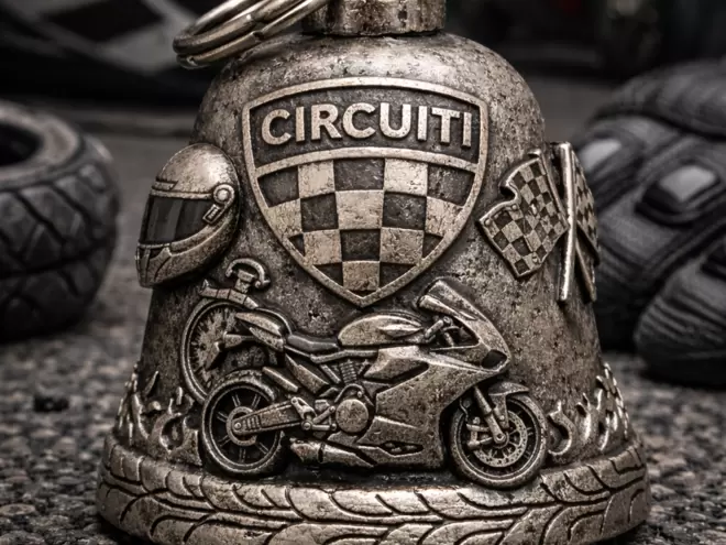 Secondo la leggenda biker, la Guardian Bell protegge il motociclista, allontana la sfortuna e accompagna ogni viaggio. Circuiti Gioielli trasforma questo simbolo in un charm prezioso, unendo artigianalità italiana e design motorsport.