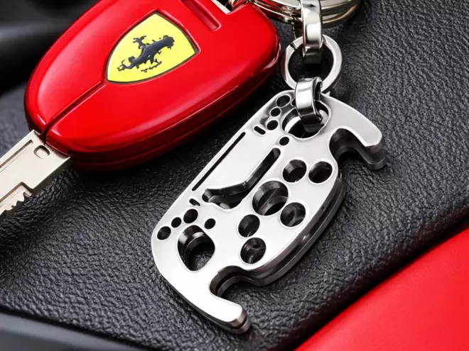 O porta-chaves é enviado numa embalagem elegante com um certificado de garantia.