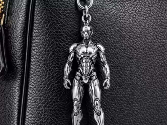 Charm portachiavi robot futuristico in metallo – Accessorio per borsa