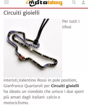 Per tutti i tifosi interisti,Valentino Rossi in pole position,l'artista orafo ed ex calciatore Gianfranco Quartaroli ha ideato un gioiello che unisce due degli sport più amati dagli italiani:calcio e motociclismo.