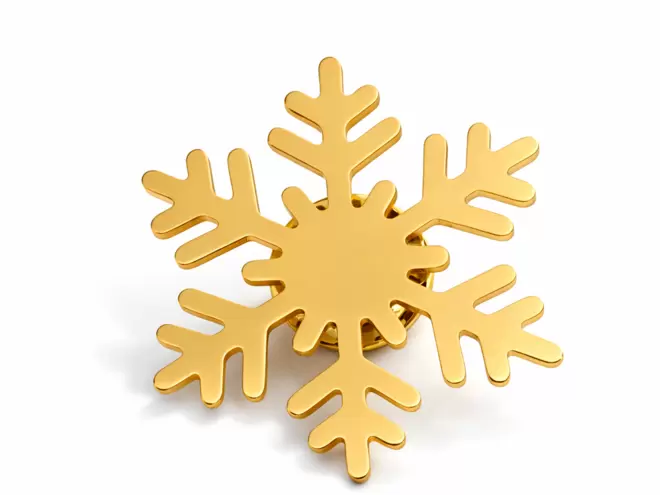 Realizzata in acciaio lucido placcato oro, unisce la resistenza dell’acciaio alla calda brillantezza dell’oro, offrendo un accessorio durevole e sempre splendente. Il design stilizzato del fiocco di neve richiama la bellezza pura dell’inverno, simbolo di unicità e armonia.