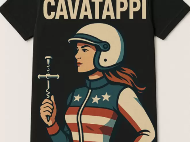 La grafica raffigura una pilota dal carattere deciso, con richiami racing e colori rétro, accompagnata dalla scritta “CAVATAPPI”: un omaggio iconico a una delle curve più spettacolari del motorsport mondiale.