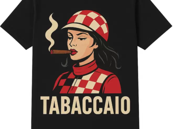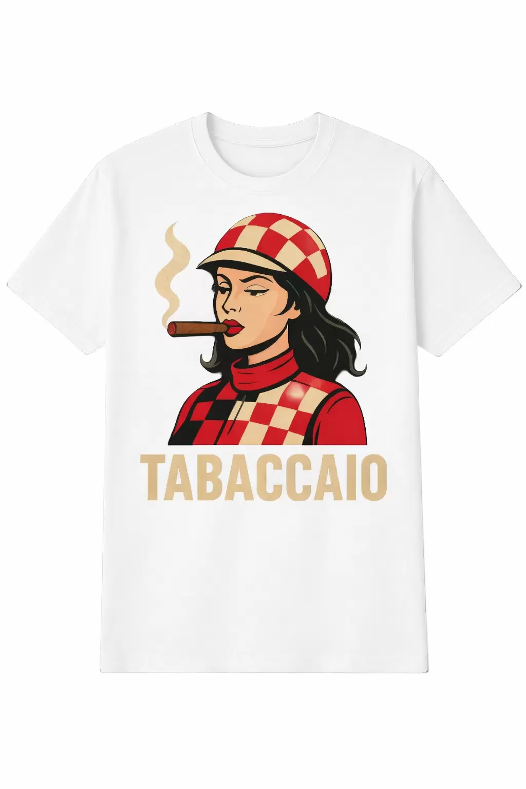 Indossare “Tabaccaio” significa portare con sé un pezzo di storia della Formula 1, reinterpretato con carattere e personalità. Una T-shirt che racconta velocità, eleganza e spirito ribelle.